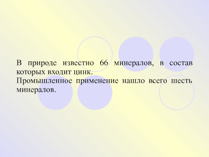 Слайд 2В природе известно 66 минералов, в состав которых входит цинк.