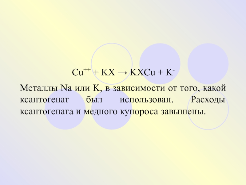зависимости от того, какой ксантогенат был использован. Расходы ксантогената и медного купороса завышены.