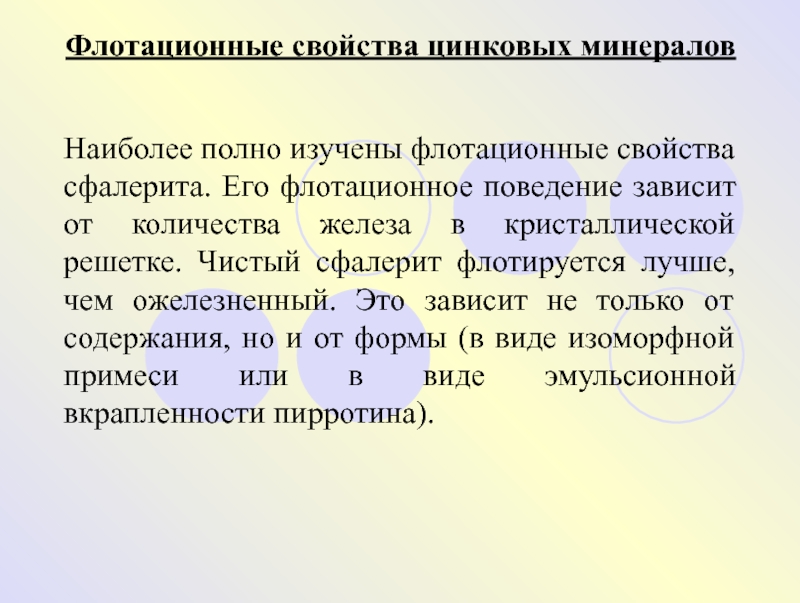 Наиболее полно изучены флотационные свойства сфалерита. Его