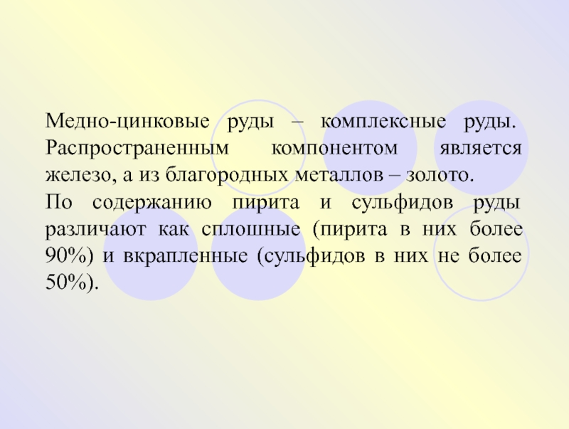 Слайд 5Медно-цинковые руды – комплексные руды. Распространенным компонентом является железо, а из