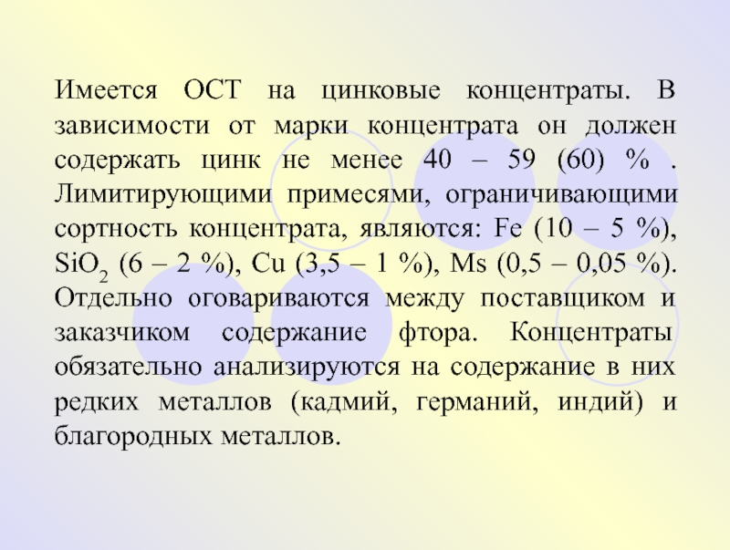 Слайд 4Имеется ОСТ на цинковые концентраты. В зависимости от марки концентрата он