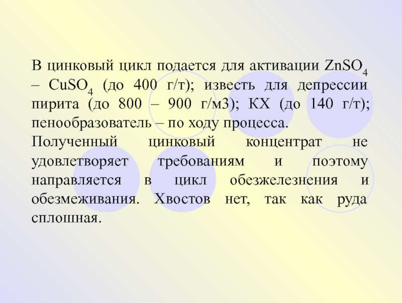 Слайд 25В цинковый цикл подается для активации ZnSO4 – CuSO4 (до 400