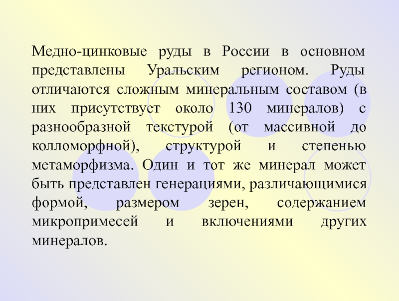 Слайд 11Медно-цинковые руды в России в основном представлены Уральским регионом. Руды отличаются