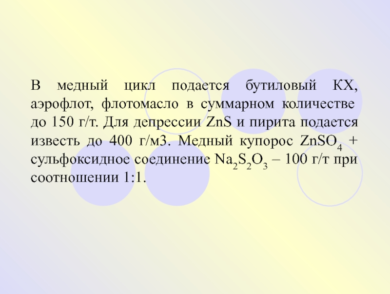 Слайд 24В медный цикл подается бутиловый КХ, аэрофлот, флотомасло в суммарном количестве