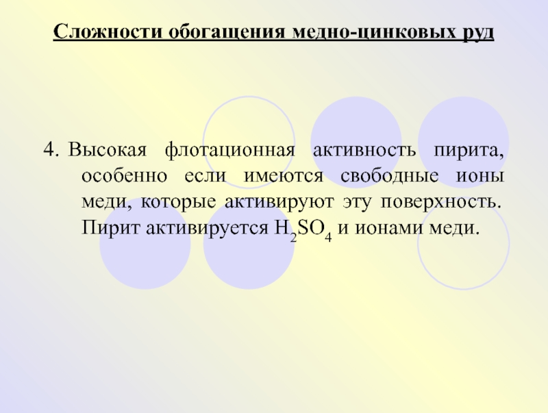 Слайд 104. Высокая флотационная активность пирита, особенно если имеются свободные ионы меди, которые