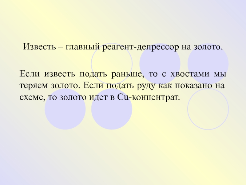 Слайд 43Если известь подать раньше, то с хвостами мы теряем золото. Если