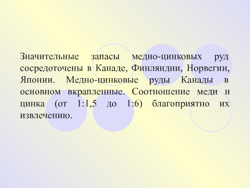 Слайд 12Значительные запасы медно-цинковых руд сосредоточены в Канаде, Финляндии, Норвегии, Японии. Медно-цинковые