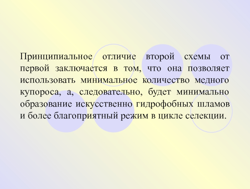 позволяет использовать минимальное количество медного купороса, а, следовательно, будет минимально образование искусственно гидрофобных шламов и более благоприятный режим в цикле селекции.