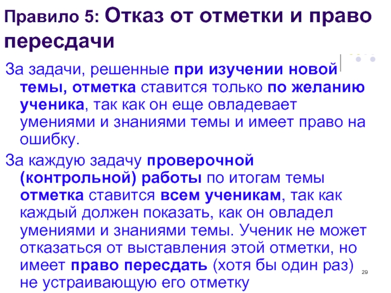 Слайд 29Правило 5: Отказ от отметки и право пересдачи
