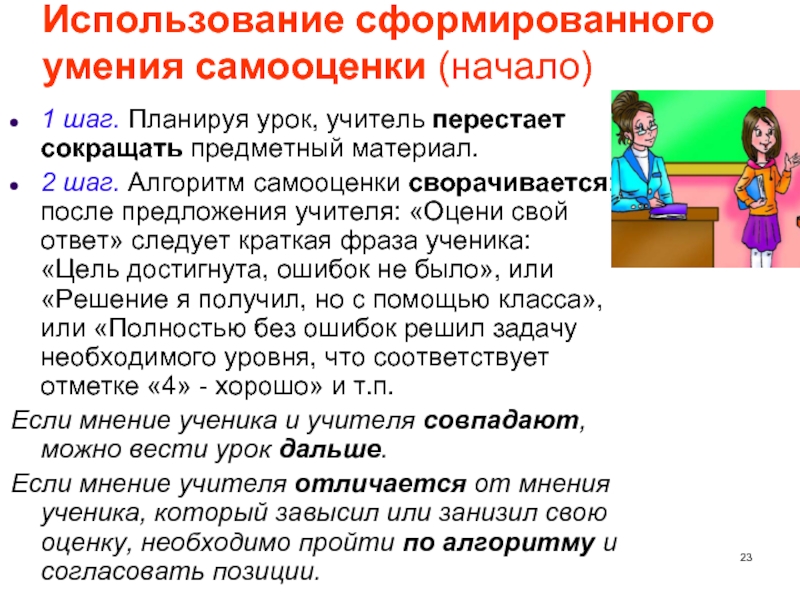 Слайд 223 шаг. На последующих уроках самооценку по алгоритму предлагается произвести по