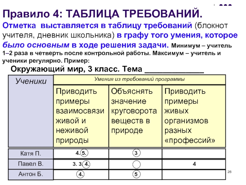 Слайд 26Правило 4: ТАБЛИЦА ТРЕБОВАНИЙ.
