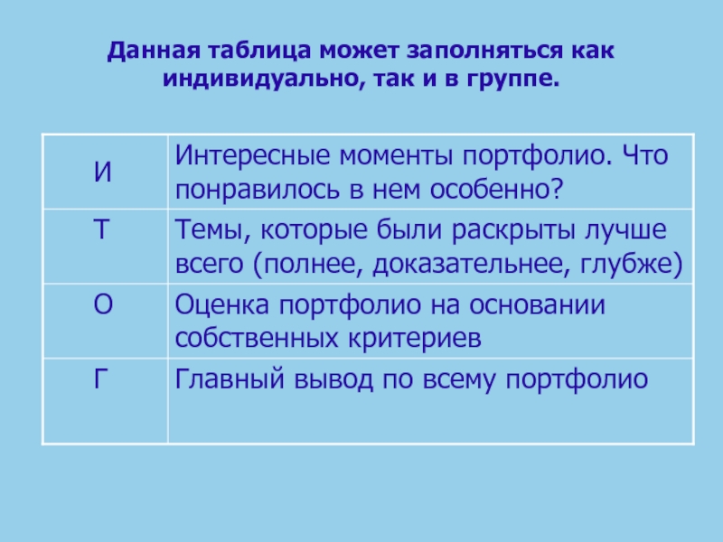 Слайд 9Данная таблица может заполняться как индивидуально, так и в группе.