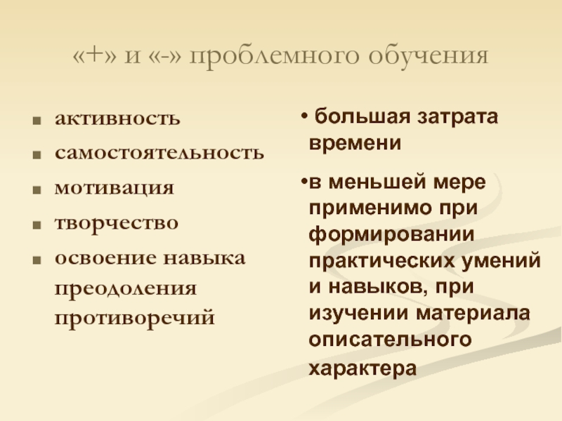 в меньшей мере применимо при формировании практических умений и навыков, при изучении материала описательного характера