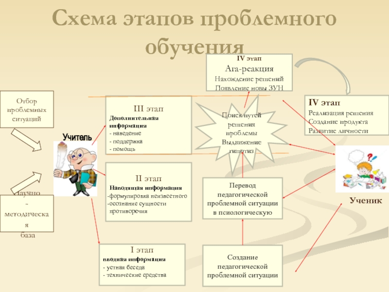включается учителем в поиск решения новых для него проблем. Структура процесса проблемного обучения представляет собой систему связанных между собой и усложняющихся проблемных ситуаций.