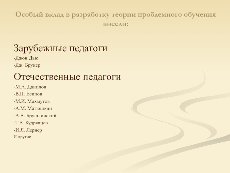 Слайд 2Особый вклад в разработку теории проблемного обучения внесли: