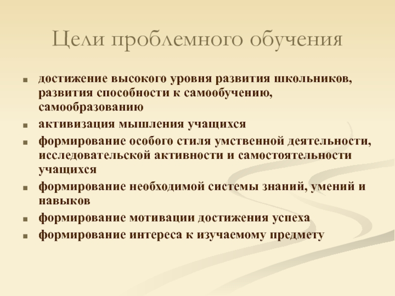 достижение высокого уровня развития школьников, развития способности к самообучению,