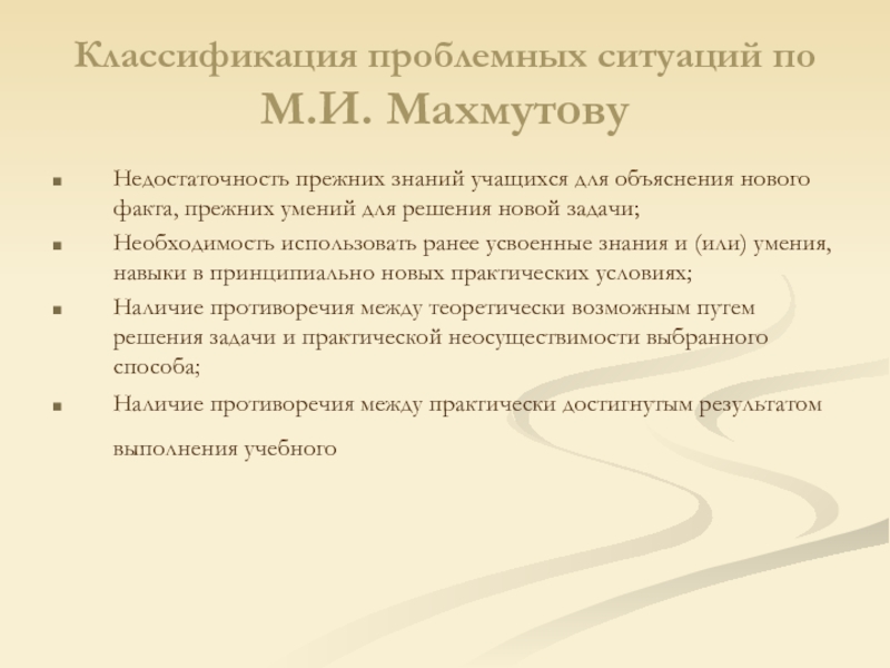 Слайд 12Классификация проблемных ситуаций по М.И. Махмутову
