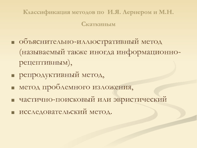 Слайд 9Классификация методов по И.Я. Лернером и М.Н. Скаткиным