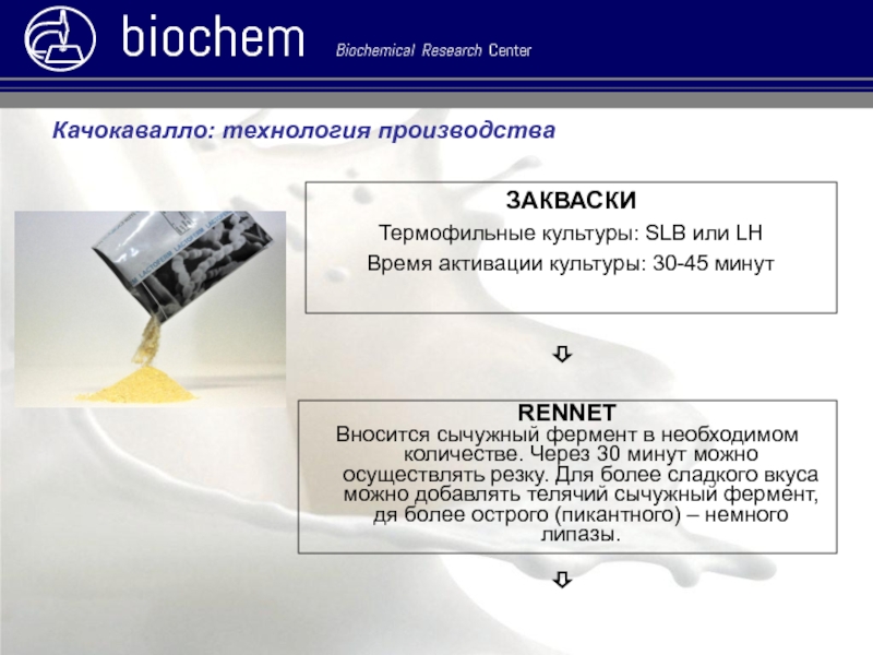 Вносится сычужный фермент в необходимом количестве. Через 30 минут можно осуществлять резку. Для более сладкого вкуса можно добавлять телячий сычужный фермент, дя более острого (пикантного) – немного липазы.
