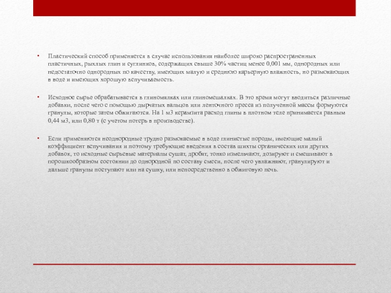Предприятия по производству керамзита должны располагаться у карьера глины. Работы по добыче сырья производятся круглосуточно. Рекомендуется (в зависимости от местных условий и особенностей карьера) создавать запас сырья на осенне-зимний период в конусах, а при необходимости проектировать крытый глинозапасник.
