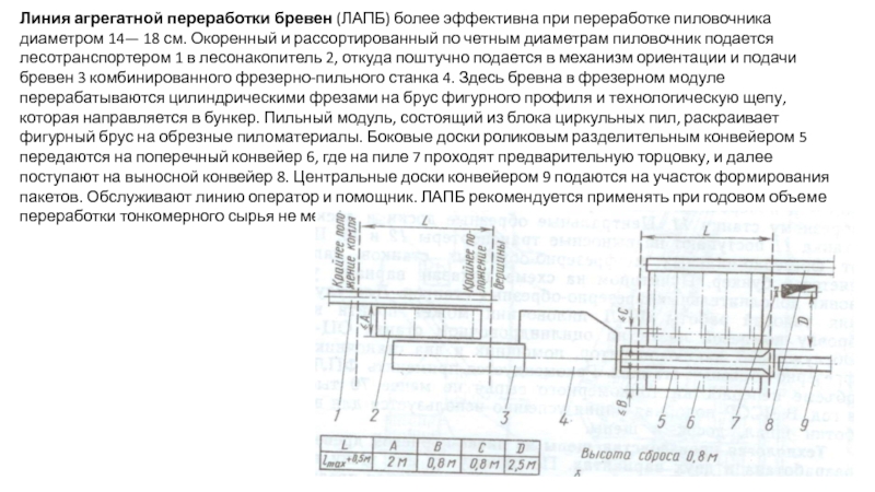 Слайд 11Линия агрегатной переработки бревен (ЛАПБ) более эффективна при переработке пиловочника диаметром