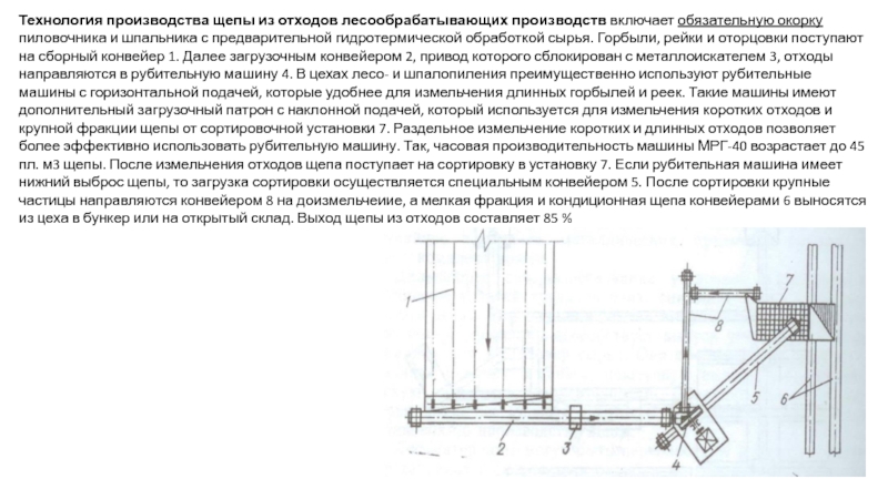 Слайд 9Технология производства щепы из отходов лесообрабатывающих производств включает обязательную окорку пиловочника