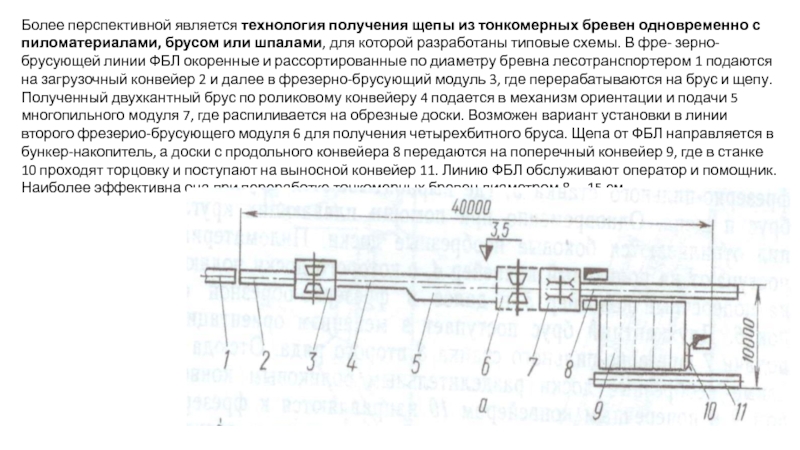 Слайд 10Более перспективной является технология получения щепы из тонкомерных бревен одновременно с