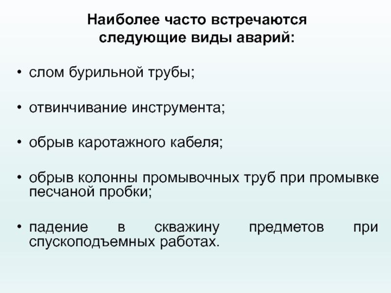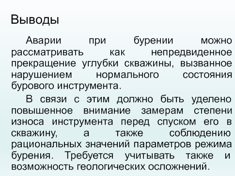 Слайд 22 Аварии при бурении можно рассматривать как непредвиденное прекращение углубки