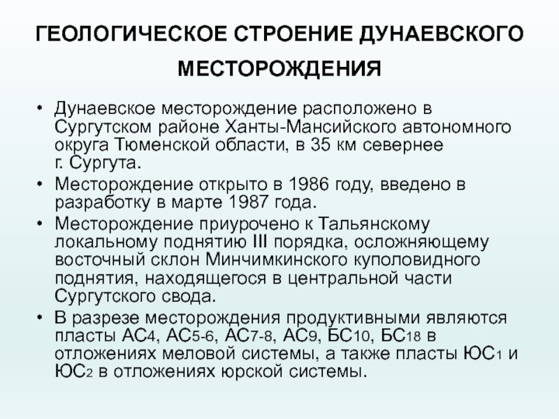 Слайд 2ГЕОЛОГИЧЕСКОЕ СТРОЕНИЕ ДУНАЕВСКОГО МЕСТОРОЖДЕНИЯ
