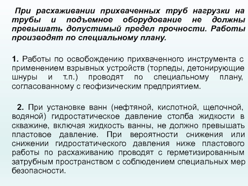 Слайд 21 При расхаживании прихваченных труб нагрузки на трубы и подъемное оборудование не