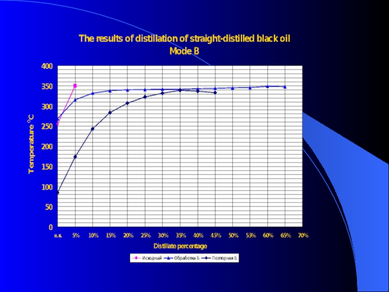 Diesel fraction percentage before and after treatment of the raw product