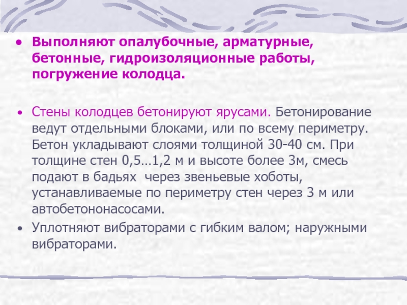Слайд 104Процесс возведения монолитных стен в траншее включает в себя операции по