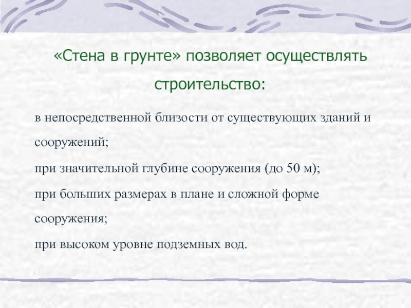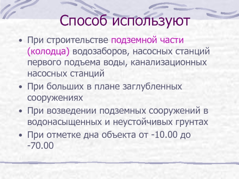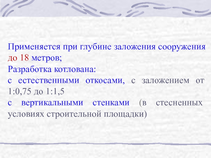 Слайд 12Применяется при глубине заложения сооружения до 18 метров;
