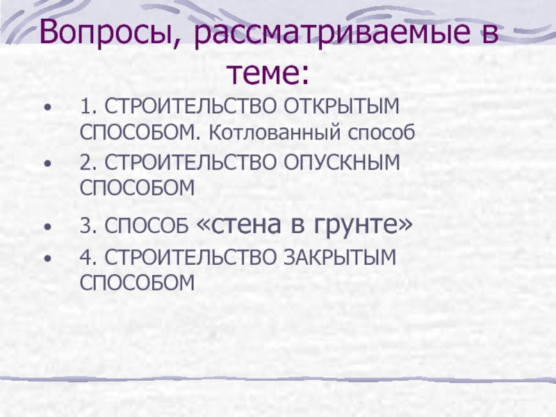 1. СТРОИТЕЛЬСТВО ОТКРЫТЫМ СПОСОБОМ. Котлованный способ