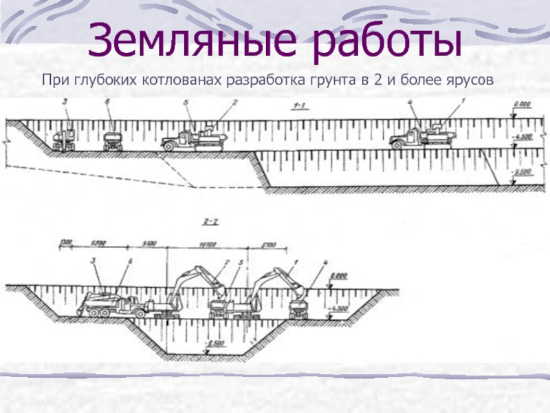 При глубоких котлованах разработка грунта в 2 и более ярусов