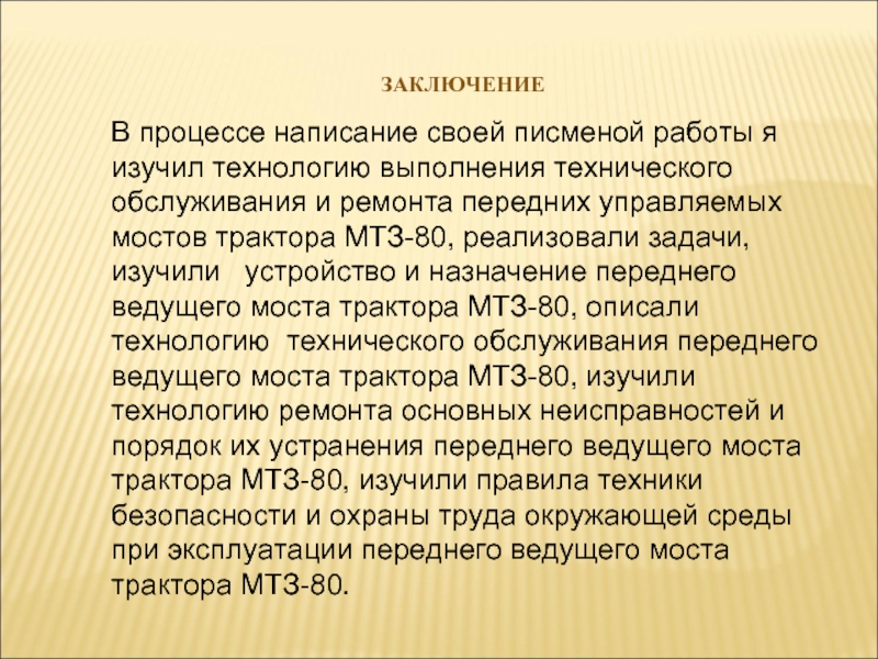 ТЕХНИКА БЕЗОПАСНОСТИ, ОХРАНЫ ТРУДА И ОХРАНЫ ОКРУЖАЮЩЕЙ СРЕДЫ ПРИ ЭКСПЛУАТАЦИИ ПЕРЕДНЕГО ВЕДУЩЕГО МОСТА ТРАКТОРА МТЗ-80.