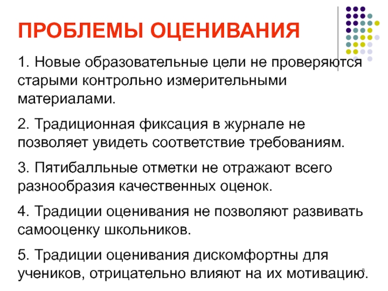 Слайд 8ПРОБЛЕМЫ ОЦЕНИВАНИЯ