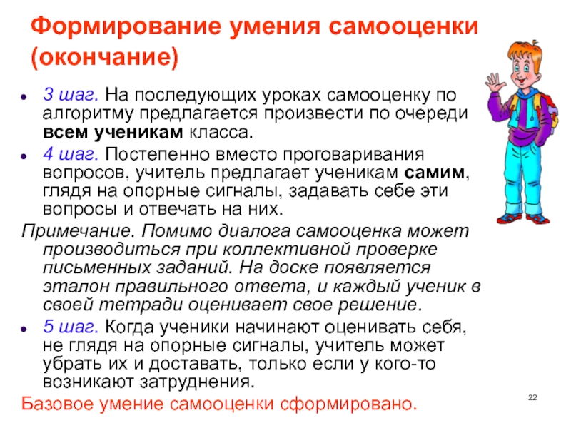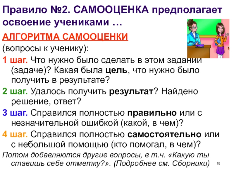 Слайд 223 шаг. На последующих уроках самооценку по алгоритму предлагается произвести по