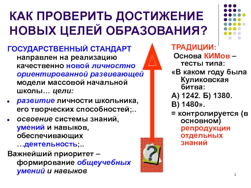 Слайд 3КАК ПРОВЕРИТЬ ДОСТИЖЕНИЕ НОВЫХ ЦЕЛЕЙ ОБРАЗОВАНИЯ?