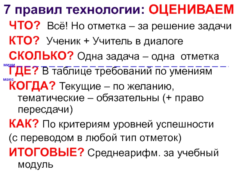 Слайд 31Правило 6: Оценка и отметка определяются по УРОВНЯМ УСПЕШНОСТИ