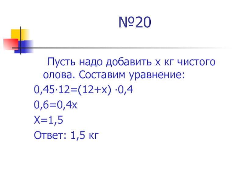 Пусть надо добавить х кг чистого олова. Составим уравнение:
