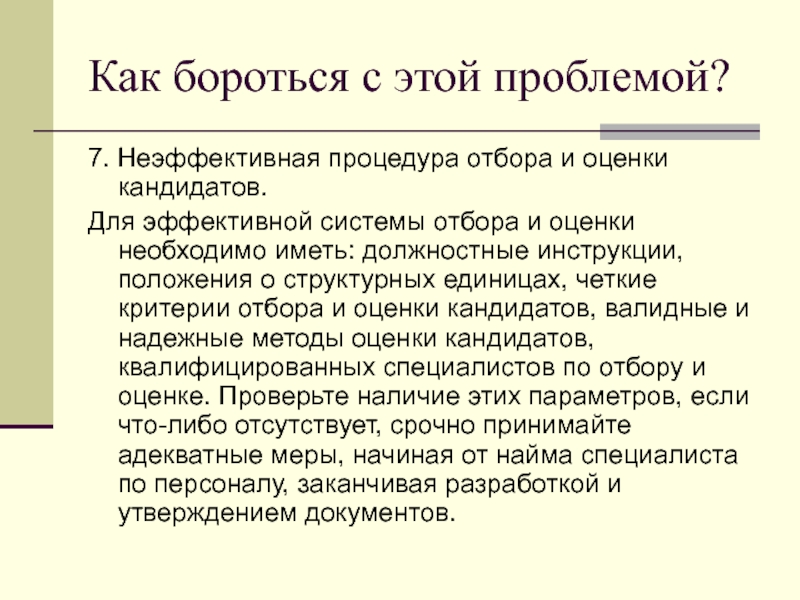 7. Неэффективная процедура отбора и оценки кандидатов.