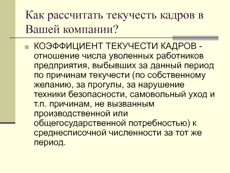 Слайд 3Как рассчитать текучесть кадров в Вашей компании?