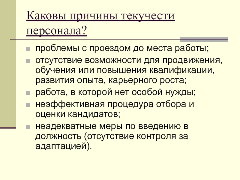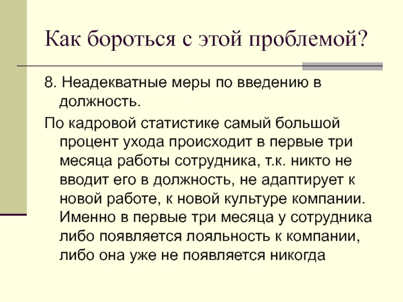 неадекватные меры по введению в должность (отсутствие контроля за адаптацией).