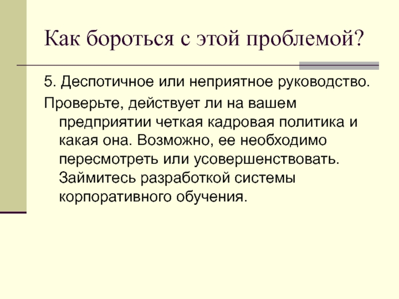 на вашем предприятии четкая кадровая политика и какая она. Возможно, ее необходимо пересмотреть или усовершенствовать. Займитесь разработкой системы корпоративного обучения.