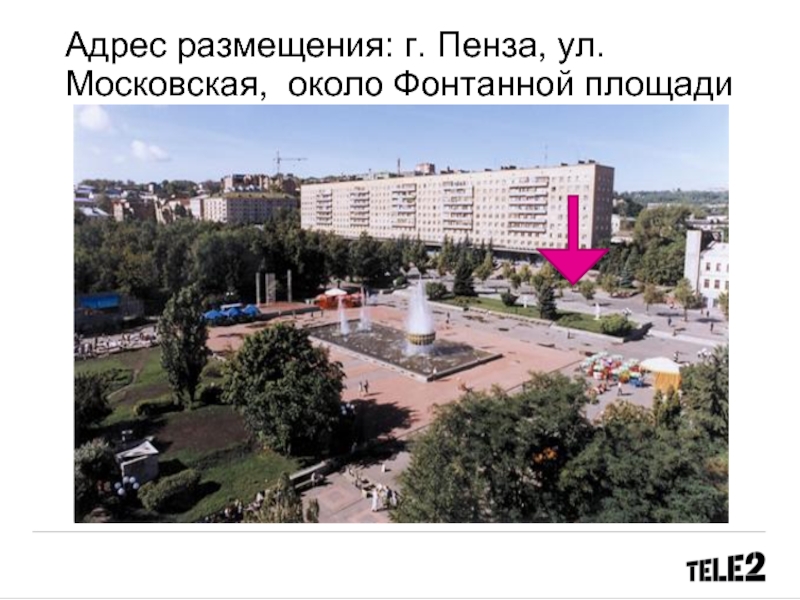 Слайд 15Адрес размещения: г. Пенза, ул. Московская, около Фонтанной площади