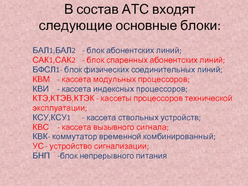 БАЛ1,БАЛ2 - блок абонентских линий;