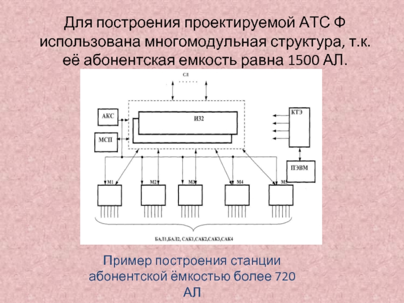 Слайд 15Для построения проектируемой АТС Ф использована многомодульная структура, т.к. её абонентская