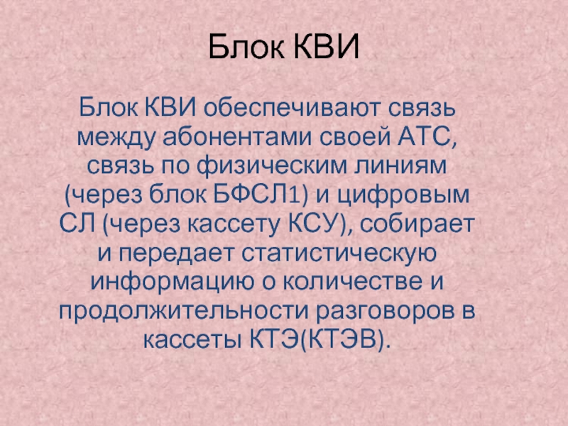 Блок КВИ обеспечивают связь между абонентами своей АТС, связь по