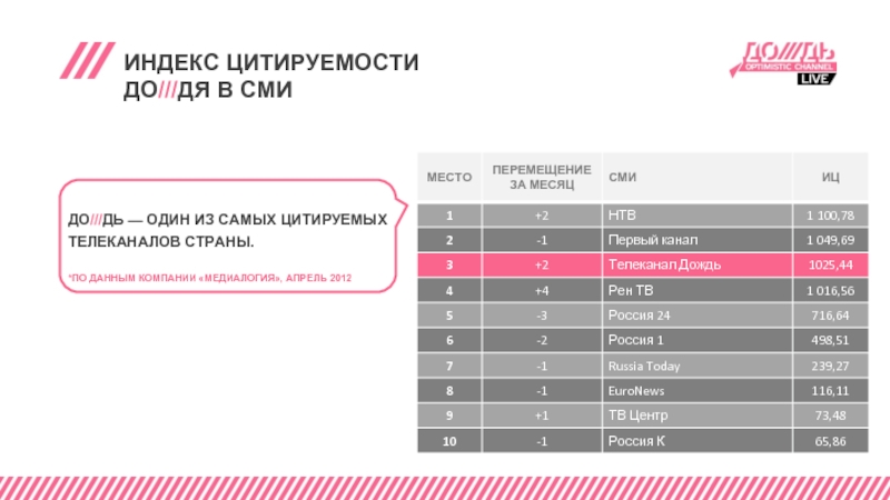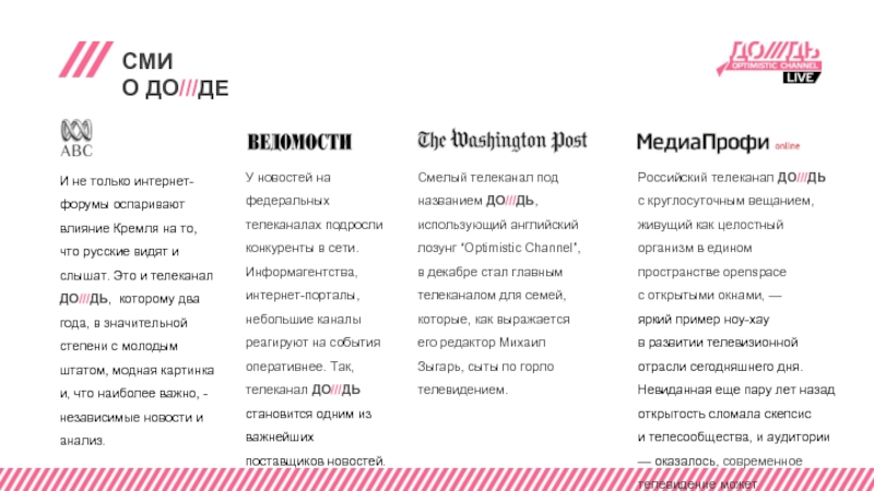 Смелый телеканал под названием ДО///ДЬ, использующий английский лозунг “Optimistic Channel”,